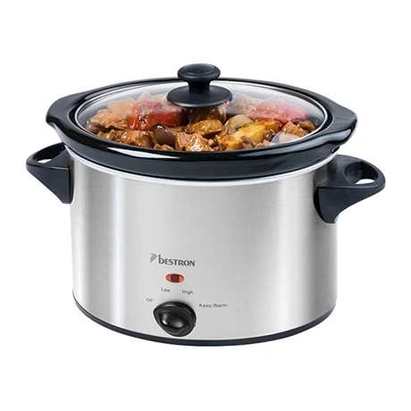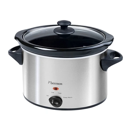 Idéal pour des cuissons lentes et à basse température la mijoteuse électrique 3,5 L Bestron sera l’accessoire parfait. Cuisez viande, légume, ragout, soupe… Son mode de cuisson permettra de conserver toutes les saveurs et vitamines de vos aliments. Très simple d’utilisation, l’appareil dispose de 4 positions (éteint, bas, élevé, garder au chaud). Son couvercle en verre vous permet de surveiller la cuisson facilement. Sa cuve intérieure amovible en céramique vous permettra de servir directement vos convives.