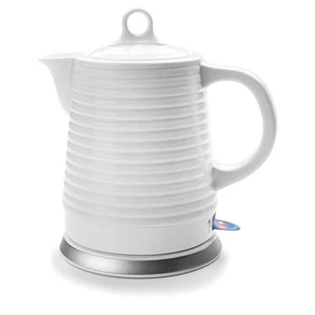 La bouilloire électrique en céramique est idéale pour faire chauffer votre eau pour vous préparer des thés, tisanes, cafés ect… Cette bouilloire d’un design original et moderne vous donnera satisfaction de part son utilisation ultra simple et ses performances de chauffe grâce à sa puissance de 1500 W. La bouilloire s’arrête automatiquement après ébullition. Très pratique, la bouilloire est sans fil. D’une capacité de 1,3 L, vous pourrez faire chauffer de grandes quantités d’eau.