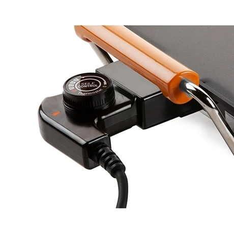 Pour une cuisson sans matières grasses la plaque de cuisson possède un revêtement antiadhésif ainsi qu’un thermostat réglable amovible pour des cuissons précises. La plancha dispose d’un témoin lumineux indiquant la marche de l’appareil.
