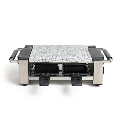 Une raclette en petit comité ? Il vous faut cet appareil à raclette 4 personnes 650 W DOC261 Livoo en inox. Accompagné de 4 caquelons à revêtement antiadhésif et de 4 spatules bois, il est équipé d’une plaque de cuisson pour pommes de terre, légumes ou viande. Bien pensé, cet appareil multiplie les détails ingénieux : thermostat ajustable avec indicateur lumineux, poignées de transport et pieds antidérapants. Il est aussi très élégant avec sa finition en acier inoxydable. Grâce à son poids plume et ses dimensions pratiques, vous l’emporterez même en week-end !