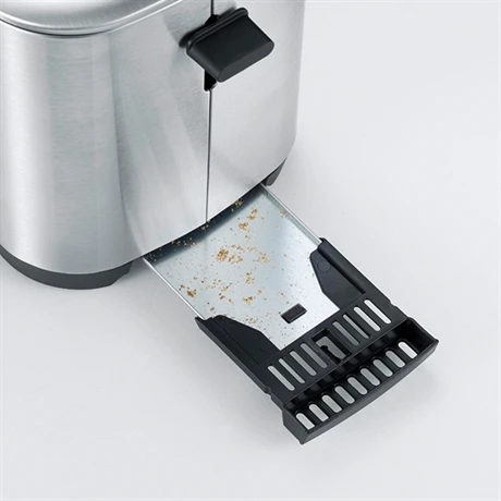 Le toaster s’arrête automatiquement en cas de blocage d’une tranche. De plus, il est simple de récupérer les miettes avec le tiroir ramasse-miettes du dessous du grille-pain.