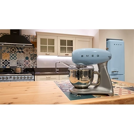 Le robot sur socle SMEG bleu azur 800 W SMF02PBEU est un allié précieux pour réaliser tous types de préparations.