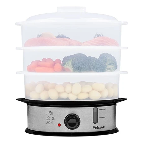 Découvrez ce cuiseur vapeur électrique de 1200 W composé de 3 niveaux, votre allié pour une cuisine saine pour profiter au maximum de tous les bienfaits de vos aliments. Avec ce cuiseur vapeur vous pourrez cuire idéalement en préservant les vitamines de vos aliments mais surtout simultanément vos viandes, poissons, légumes ou encore riz, pomme de terre mais aussi vos œufs.
